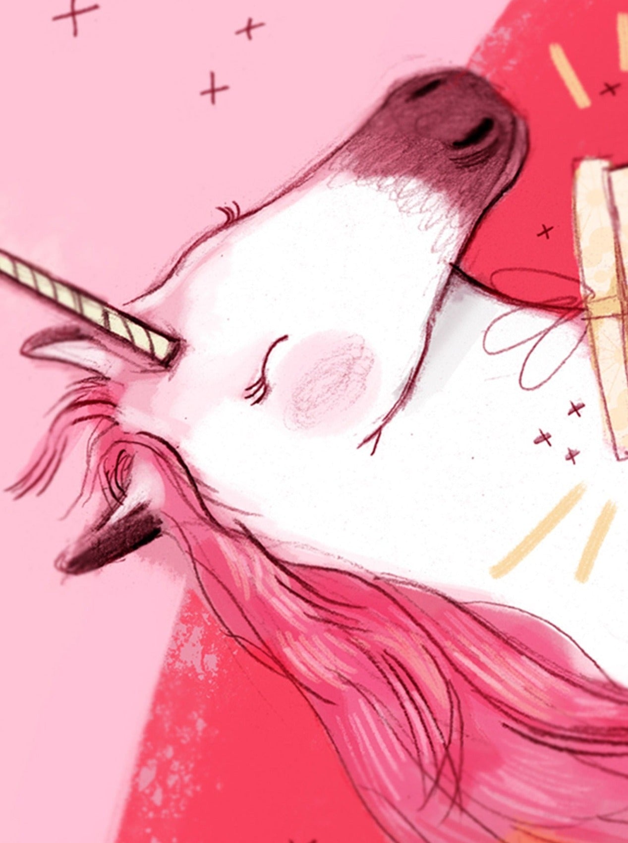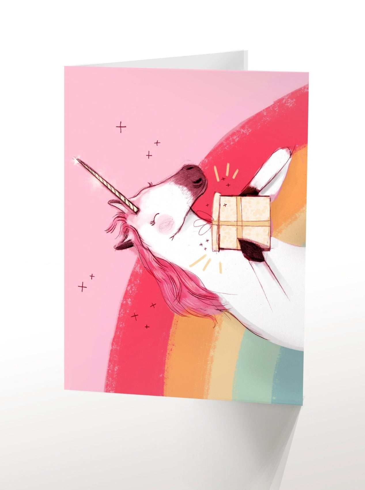 Greeting card, without text, representing a pretty pink unicorn!