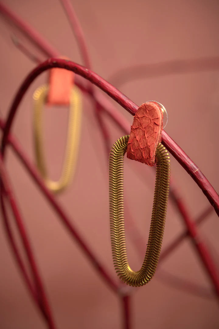 Various leathers are used in this production: fish skin, cowhide, buffalo hide